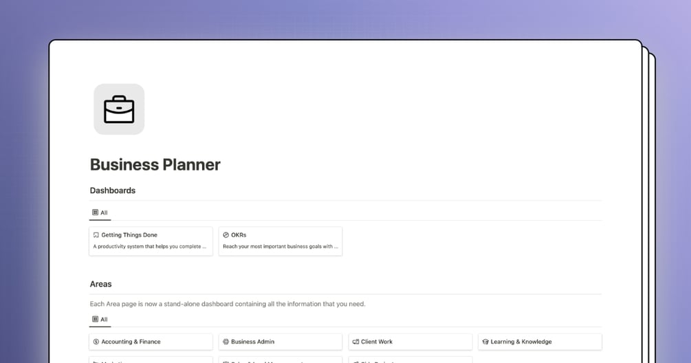 A full extensive Business Planner template to plan your professional productivity system.